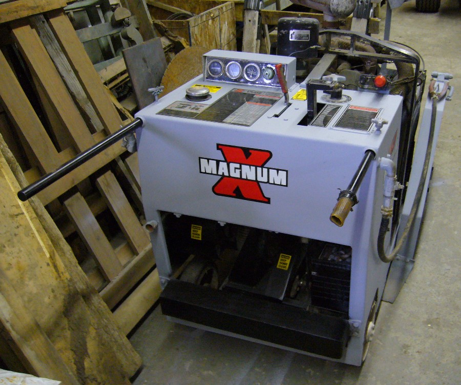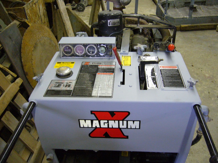We have a complete Magnum Model 6585 LONG NOSE concrete saw for sale with approx. 650 hours on it. It comes with the humungous blade guards shown in the pictures and a couple of partially used blades for the guards. Engine starts with a flick of the switch, does not burn oil and the complete machine was well maintained by its present owner (whom we know well and we are familiar with how they maintain their equipment) The saw has been cleaned up and re-painted with new decals on it. The saw is located in Uxbridge, Ontario (near Toronto) If you require any further information or a freight price to your door (we use Old Dominion Freight Lines www.odfl.com) contact us. If someone is looking for a great running 65 hp engine and doesn't need the saw portion this is still a great buy at $7,000. CLICK ON PICS BELOW TO ENLARGE